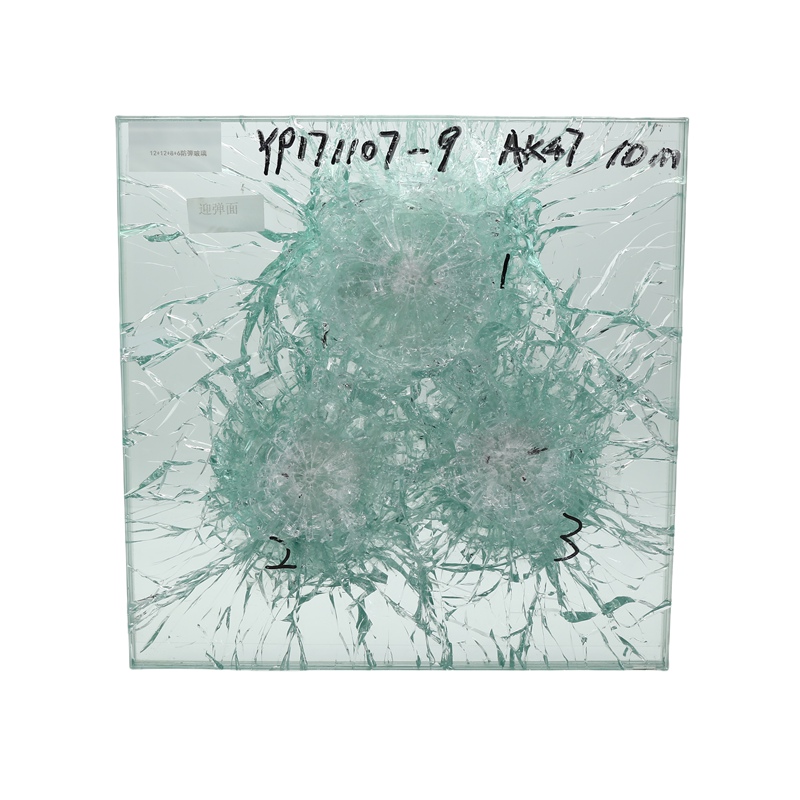 科学配比: 以我们常见的针对 AK47 防护的 12mm+12mm+8mm+6mm 结构为例,它通过不同厚度的玻璃原片与高性能胶片(PVB/SGP)层叠,实现了动能的梯度吸收。