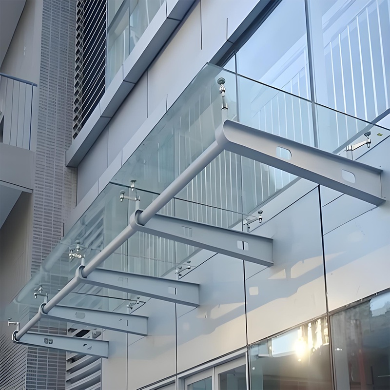 美观且现代: 雨棚玻璃拥有干净、现代的外观,为建筑物增添了现代和艺术气息。其透明的设计保持了外部景观一览无余的视野,同时增强了建筑立面的视觉吸引力。