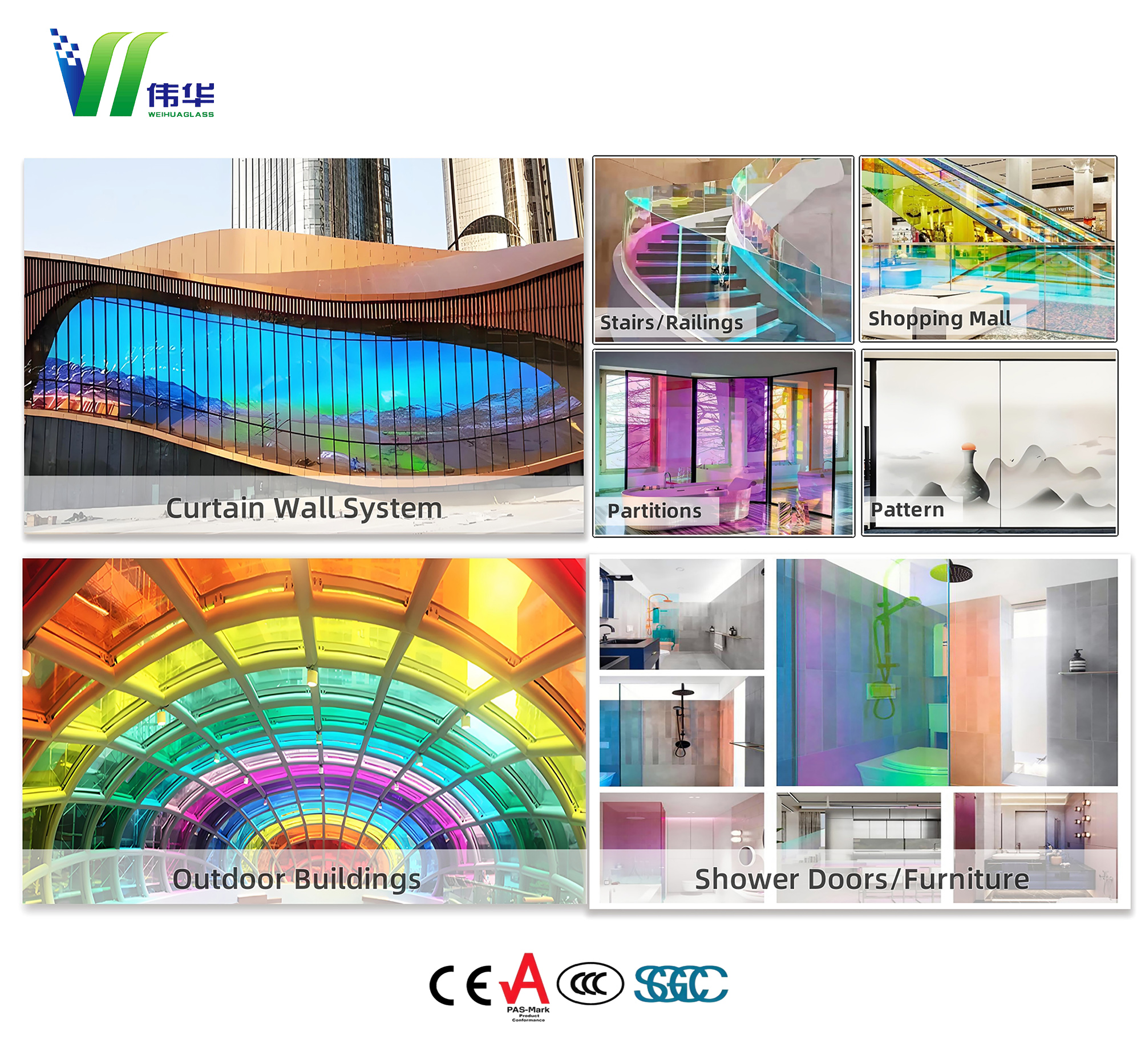 我们采用严格的层压技术,在两层玻璃(通常是低铁玻璃)之间粘合专门的高科技光学薄膜。其结果是一个充满活力的、生动的表面,可以传输一种颜色,同时反射另一种颜色,为现代建筑和豪华内饰创造出令人惊叹的视觉效果。